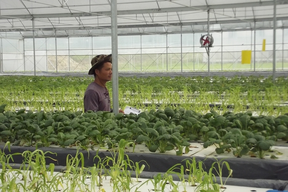 7月18日上午9时,在陆书记的带领下,同学们从村委楼出发,走过村内农田、山丘,还到了山上农业公司参观大棚蔬菜种植基地。蔬菜种植基地除了大棚种植蔬菜,还有种植优良品种水稻,聘请专门技术人员指导生产。基地的技术人员向大家简单说明了以下大棚种植下无土栽培的原理以及目前的种植情况。据了解,目前这个蔬菜种植基地仍在建设中,从去年十月份开始动工,预计两年能建设完成三十个大棚,从种植到加工、包装等由公司完成,届时所种植的蔬菜会运用冷链配送出口到国外,这也将为珊瑚村的农村经济建设带来新的发展机遇。