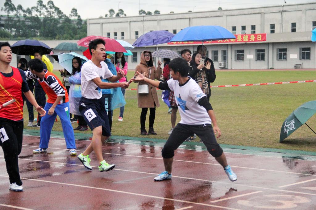 天公不作美,今天下着冷雨,刮着寒风,但是数院的运动健儿们仍顶着寒风与冷雨,在寒冷的田径场上挥洒着如热火一般的青春,赢得了观众席上同学们的阵阵喝彩。在场上的各位工作人员们冒着风雨坚守自己的岗位,让校运会井然有序地进行。百米决赛中,雨中奔跑的运动健儿们勇往直前永不退缩;接力赛中,运动健儿们迈着飞快的步伐,顺利完美地交接;长跑决赛中,运动健儿们的坚强的毅力和顽强的意志,决不放弃的信念,感动着我们。