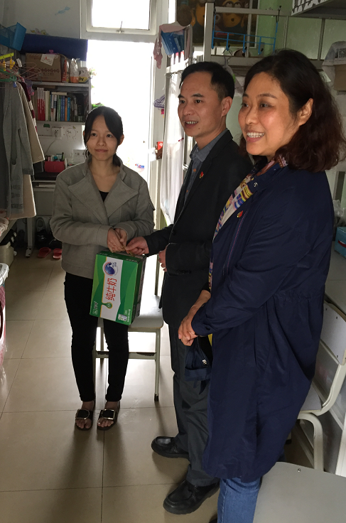 的党委书记黄志凯、副书记孙凌、学工班主任张昭、团委书记胡啟岚四位老师,走进留校的学生宿舍对学生进行假期慰问和安全教育。
