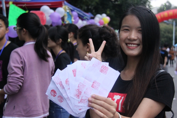 游戏进行到后期,数学嘉年华活动迎来了第二个狂high高潮—抽奖环节。同学们在参与游戏的同时还能得到不同数量的盖章,而集齐一定数量的印章则可以在指定摊位中抽奖。有的人抽到龙猫音乐盒,有的人获得立体拼图,有的人获得小草夹,其中精算151班同学共同集齐400个印章赢得终极大奖。