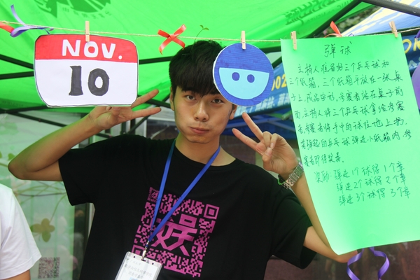 一场精彩的快闪舞拉开了数学嘉年华的序幕,在数院艺术团舞蹈队的带领下,数院团学的全体部委怀着一颗激动的心跳着快闪舞,场面尤为壮观。开幕式结束后,大家回到各自的摊位上,等待着参与游戏的人,同时也不忘鼓动路人参与到游戏中。每一个部门都有属于自己的游戏,有“正话反说”“猜字谜”“找成语”等等。有的游戏考验参与者的反应能力,有的考验参与者的动手能力,在游戏中,参与者在快乐中思考。