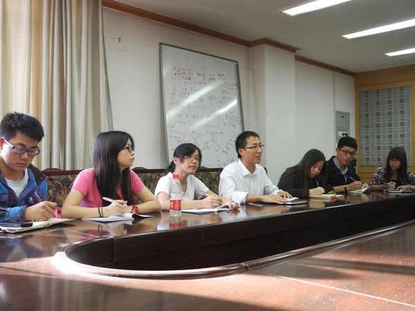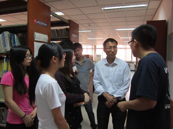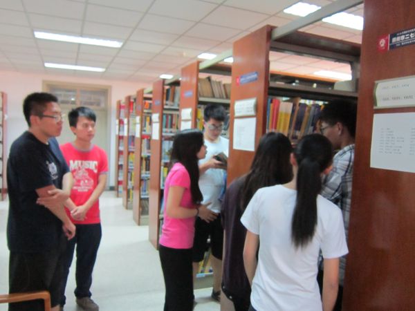 在参观北大数学学院图书馆过程中,我们首先了解到图书馆书籍的种类与分布,我们发现书籍涉猎很广,不仅仅有数学书籍,还有物理、力学、化学、医学等类书籍,其中大部分书籍是外文书籍,尤其是期刊,较多的都是西文期刊,与之相比,中文期刊较少,从中不难看出北大学子与世界接轨的足迹。更值得一提的是,北大数院图书馆还有学位论文刊物,以保存往届优秀的学位论文,供师弟师妹们阅览。接下来,我们了解了图书馆书籍的来源,其中一部分由校友赠送,另一部分由学院统一购置。在双方师生的交流中,我们更是见识到北大学子博学好学的精神。