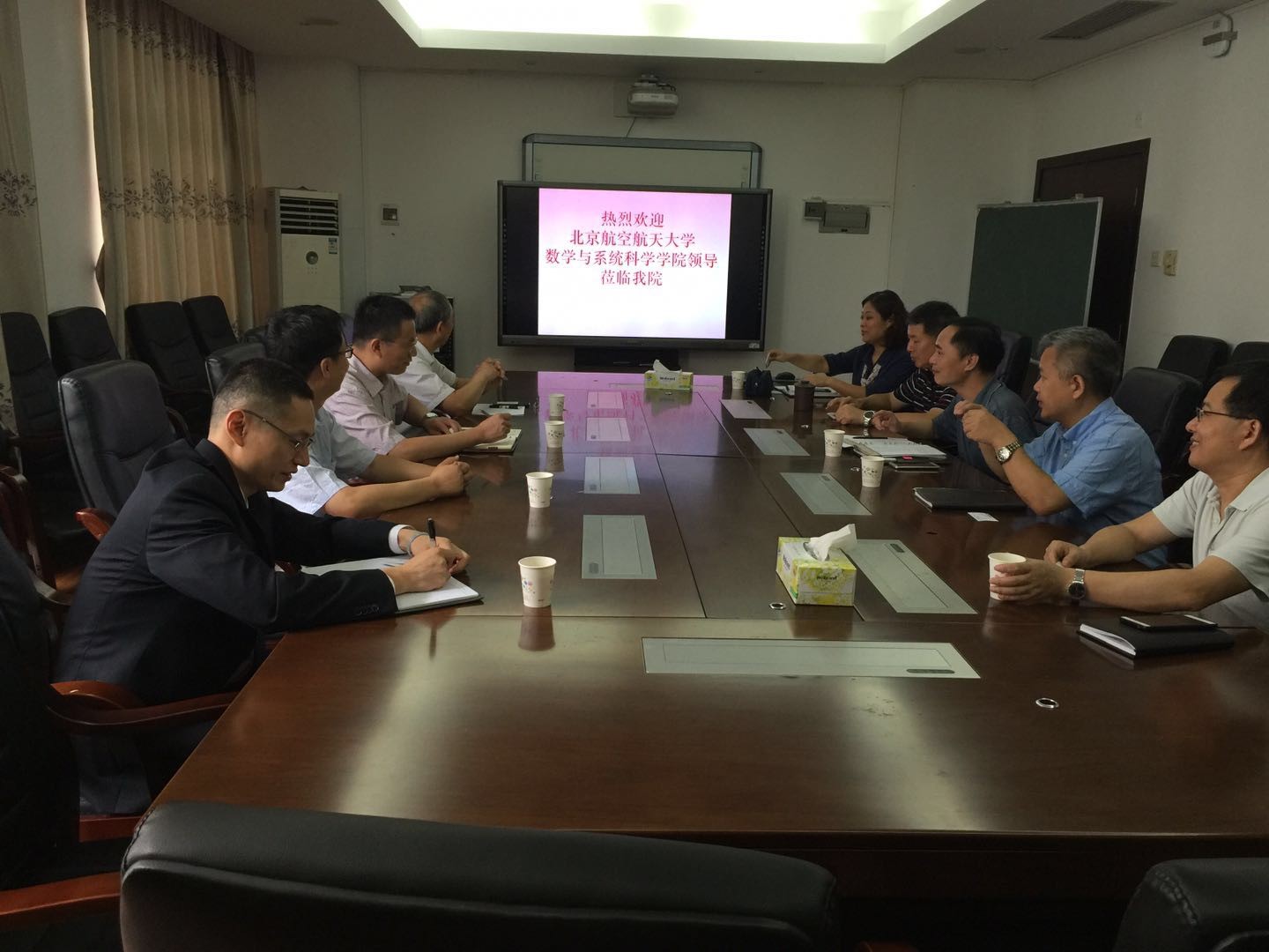 6月25日上午,北京航空航天大学数学与系统科学学院党委书记袁星、原党委书记高宗升等一行来性爱网 调研交流,性爱网 院长曹道民、党委书记黄志凯等参加了座谈会。