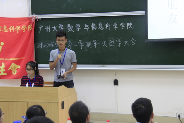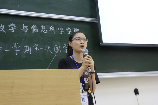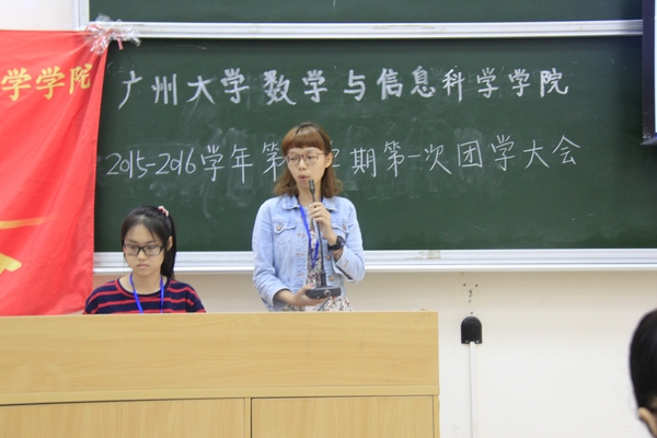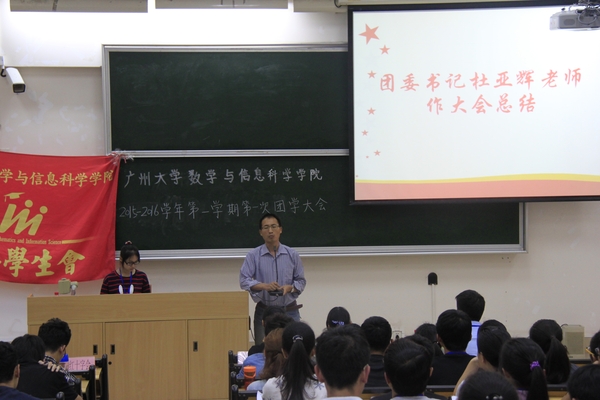会上,团委副书记刘奕泠就团委的组织结构,各部门常规工作及部门特色活动作了简单地介绍,并就“如何将事情做完”与“如何将事情做好”这两个问题做了透彻的分析。学生会主席邝俊炜讲诉了自己作为团学人的行迹——从“初识”到“经历”,从“考验”到最后的“成果”。最后,他给每一位团学人留下了“为什么要成为一名团学干部”、“你想要在这里得到什么”、“你要怎样做好这一年的工作”、“怎样能实现超越”这4个值得探索和思考的问题。接下来,团委学生会各部门部长及性爱网主任对本部门的职能、工作计划以及成员作了详细的介绍。由各个部门的口号首字组成的“愿我们默契常在,数院团学万众一心”深深印在了大家心中。四大协会的负责人分别介绍了本协会的组织架构,工作计划和特色活动,同时也对本协会寄予美好的期望。最后,团委书记杜亚辉老师为本次大会讲话,他讲述了自己对团学的理解,从新生入学到迎新晚会再到毕业,都有团学人为大家服务,希望新部委们能共同努力,在新的一年为团学为数院添彩。老师给大家提了一个建议:“尽管我们是学数学的,但在生活中读书也是必不可少的。”杜老师的一番话,让大家感触颇深。