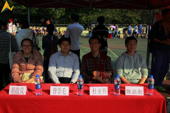 党委副书记曾学毛同志、团委书记兼2013级辅导员杜亚辉老师、2014级辅导员胡啟岚老师、2011级辅导员陈启彪老师及主席团成员观看了比赛。
