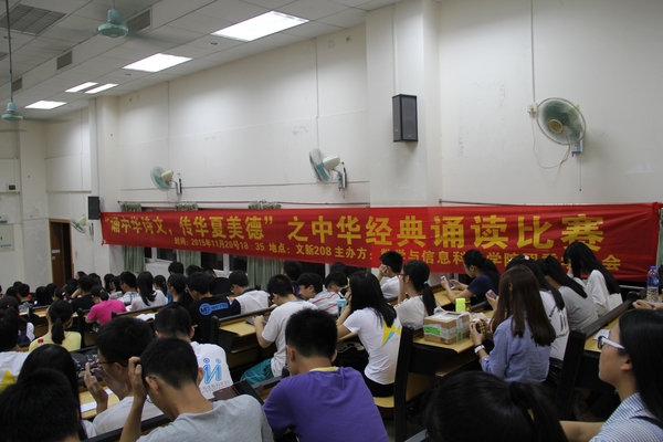 2015年11月20日7点整,性爱网 举办的中华经典诵读比赛在文新208拉开了帷幕。出席本次比赛的嘉宾有性爱网 党委副书记曾学毛同志、学工办主任兼12级辅导员顾书老师、院团委书记兼13级辅导员杜亚辉老师、14级辅导员胡啟岚老师以及学院团委学生会主席团。