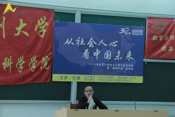 承办的广州大学博学讲坛讲座在理南622顺利举行。本次讲座由《南风窗》主笔、“调研中国”导师石勇先生主讲,主题围绕“从社会人心看中国未来”这一话题,本次讲座同时也是《南风窗》创刊三十周年系列讲座之一,《南风窗》杂志社副总编李龙、南风窗杂志社研究部副总监陈可珺等人参加了本次讲座。