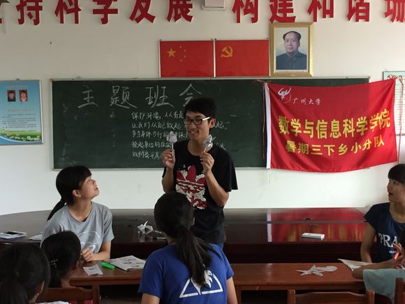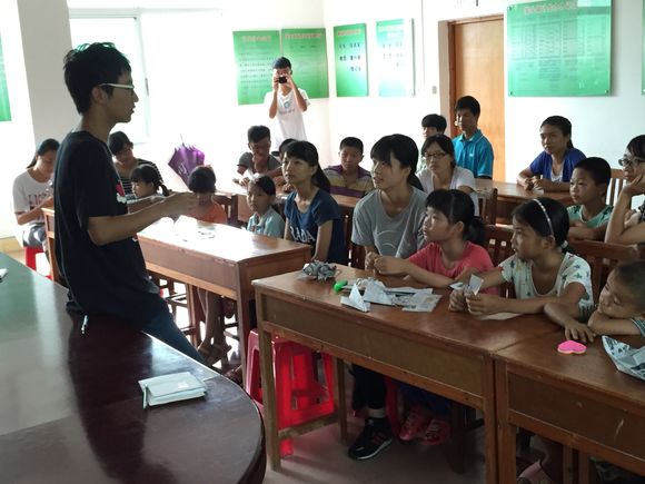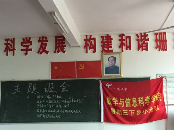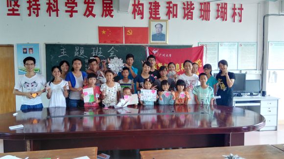 7月17日上午,数院暑期三下乡珊瑚村小分队在村委会办公楼三楼电教室为村里的小朋友们举行了以“环保你我他”为主题的主题班会。由于天气原因,到场的小朋友比预计的人数少,但热情不减,尤其是开场的手工制作环节把小朋友们的积极性带动起来。小朋友们自由发挥他们的想象力,在工作人员的帮助下分组制作了许多手工作品,例如百合花、玫瑰花、篮子等。随后,班会课正式开始。先由4名队员为小朋友表演小品《地球妹妹的哭诉》,生动形象的表演吸引了小朋友们的注意力,让他们对本次班会的主题有了初步的认识。随后主持人带领小朋友一起喊出了这次班会的口号“保护环境,人人有责”,用通俗且生动的语言为大家讲解了保护环境是每个小朋友的责任与义务。主持人引导小朋友们了解节约水电、注重保护环境的重要性,最后在环保宣言的朗读声中结束了本次主题班会,小朋友们有秩序地离场。
