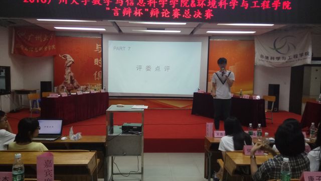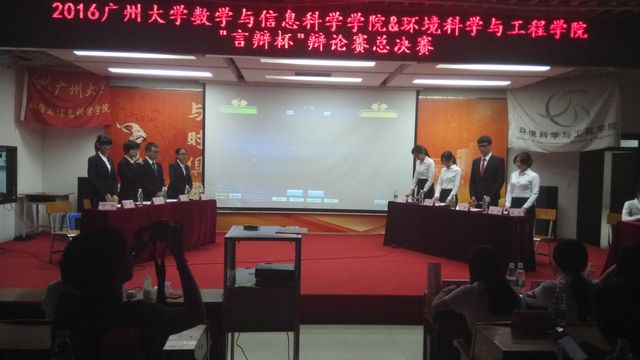 ,反方为环境科学与工程学院。本次比赛采用了2016年广州大学新赛制。比赛分为7个环节。辩论赛场上双方你来我往,毫不相让。时而妙语连珠,诙谐幽默,令人捧腹;时而慷慨激昂,掷地有声,令人愤懑。