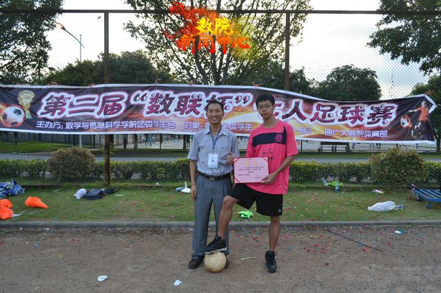 经过一番激烈的角逐,最终“咩咩”队技胜一筹,荣获本届“数联杯”的团体冠军,“1211”队与“10数学”队分列二、三名,来自“你中意”队的吴伟雄同学摘得“数联杯”个人最高荣誉——金靴奖。杜亚辉老师为获奖队伍颁发奖牌,并为“金靴奖”获得者颁发获奖证书。