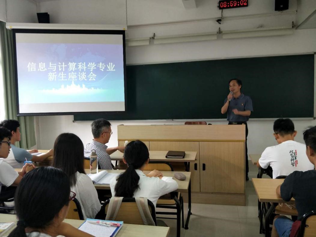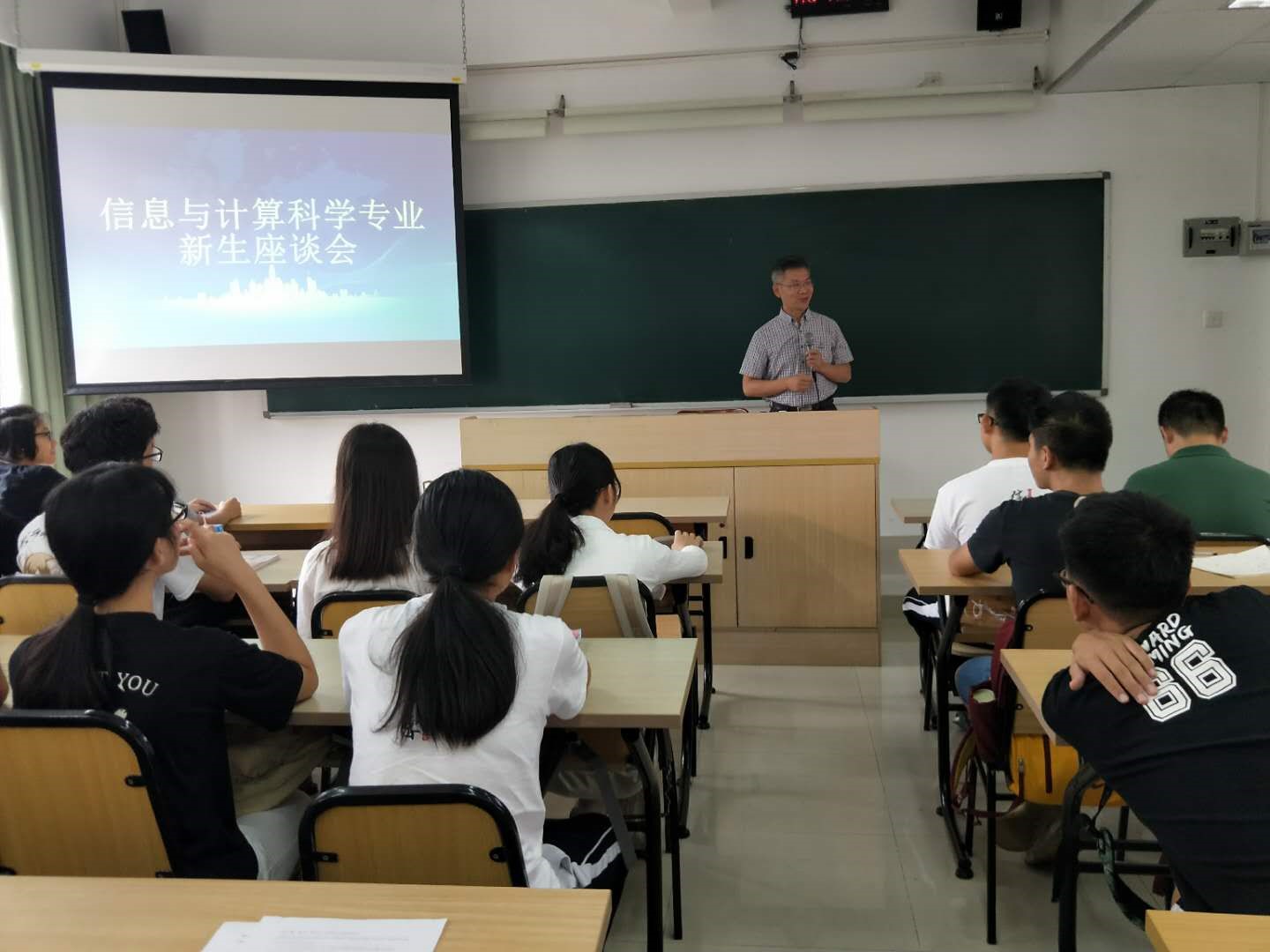 信息与计算科学专业新生座谈会于2018年10月25日在理南407召开。出席本次座谈会的有学院党委书记黄志凯老师和专任教师彭济根教授。