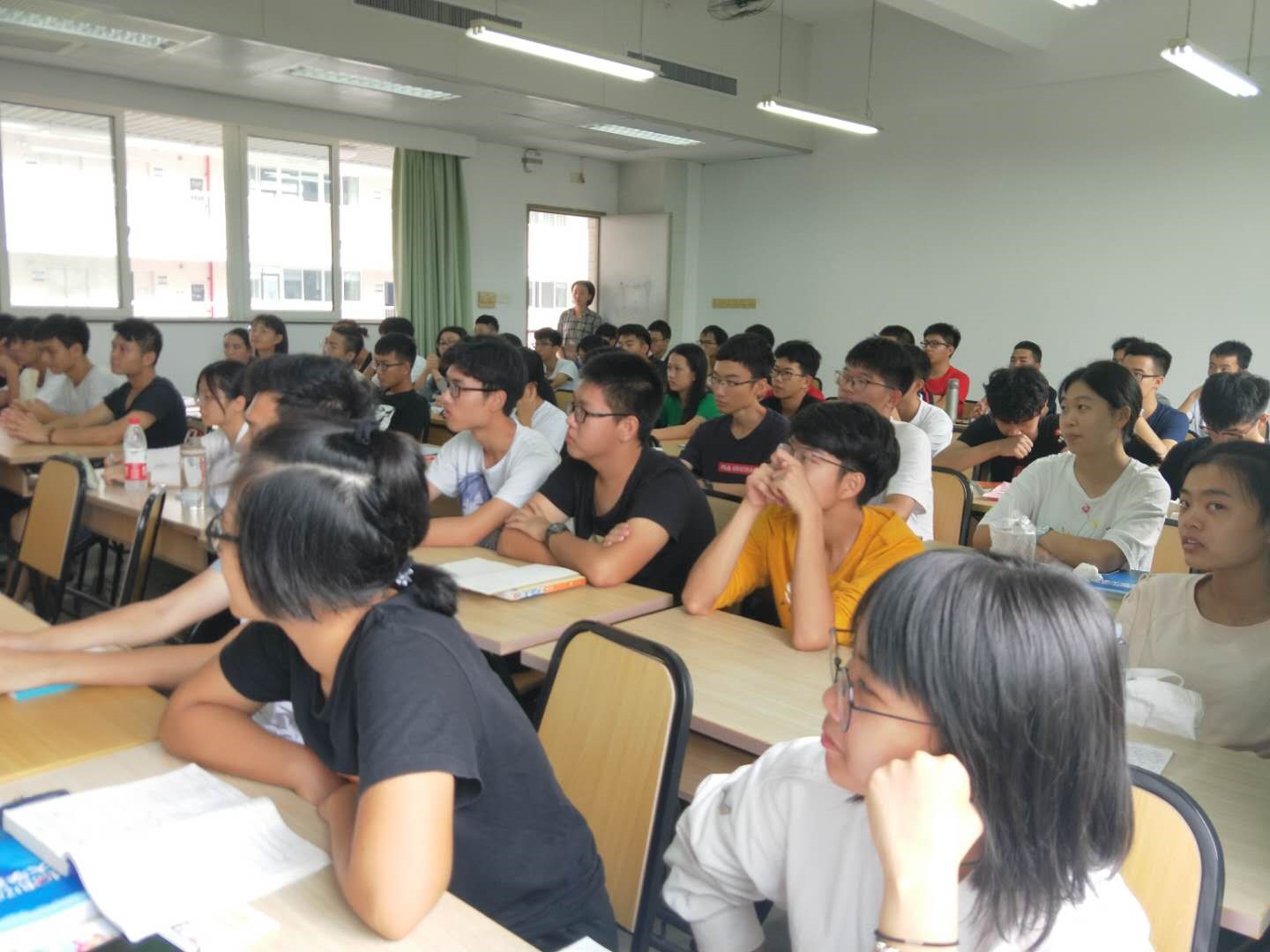 座谈会首先由黄志凯书记上台讲话。他提到大学的学习生活与高中是有区别的,高中有老师督促着你学习,但是到了大学,学习完全是自主的。老师不会再像高中一样监督你,主要还是靠学生主动跟老师进行交流。接着由彭济根教授开始了本次的座谈会。他讲解了为什么要将信息与计算科学专业划分到数学院里,并通过把数学比作一个圆形象生动的向我们展示了数学的魅力。他提到信息与计算科学专业是一种推动计算机技术的发展的专业,计算机技术的发展离不开信息与计算科学的科学计算。最后他强调,只要学好数学,一切什么都不成问题。最后由同学们进行提问,有同学问到“如何学好数学”,彭教授回答到:“不论什么事,只要你勤奋,只要你肯努力,都能学好,数学不注重结果,因为数学的结果都是正确的。最重要的是要注重过程。” 还有同学提出有关考研的问题,彭教授都作了一一解答。彭济根教授的精彩讲解赢得了同学们一片热烈的掌声。