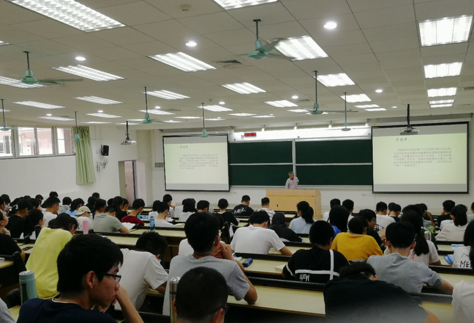 3月29日下午,广州大学数学学院院长曹道民教授在理科南楼522召开以“为实现中国梦而读书”为主题的思政第一课,数学学院181、184、185的全体同学共一百五十位同学参加了这次课程。