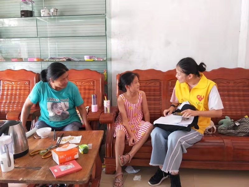 基于上述情况,从第二天开始,狮岭关爱小分队走进产业区附近的花都狮岭镇社工服务站,开启“守护童年 关爱行动”。在社工们的指引下,与农村留守儿童、困境儿童结伴,开展家庭走访关怀、社工站关爱服务、社工基地建设等实践活动,了解暑期儿童监护、人身安全、健康成长等突出问题,在社工的带领下实践队的同学们关心慰问困境家庭的儿童,帮助他人积极乐观面对生活、勇于面对逆境不断成长进步。同时,自己也深深地领悟到生活的珍贵与感恩、生命的脆弱与珍惜,同学们通过“一天打60多个关怀电话说到声音嘶哑,深刻感受到这些工作只是社工每天工作的一小部分”,他们还要“面对生离死别重大疾病面前,社工们内心触电但更多是给与关怀和帮扶”“面对困苦,我们还是能帮尽帮”“布置环境本来是一件小事情,用心做起来真心不容易,社工们就是用心布置起每一个角落”……每个点滴都触动着同学们的心灵。