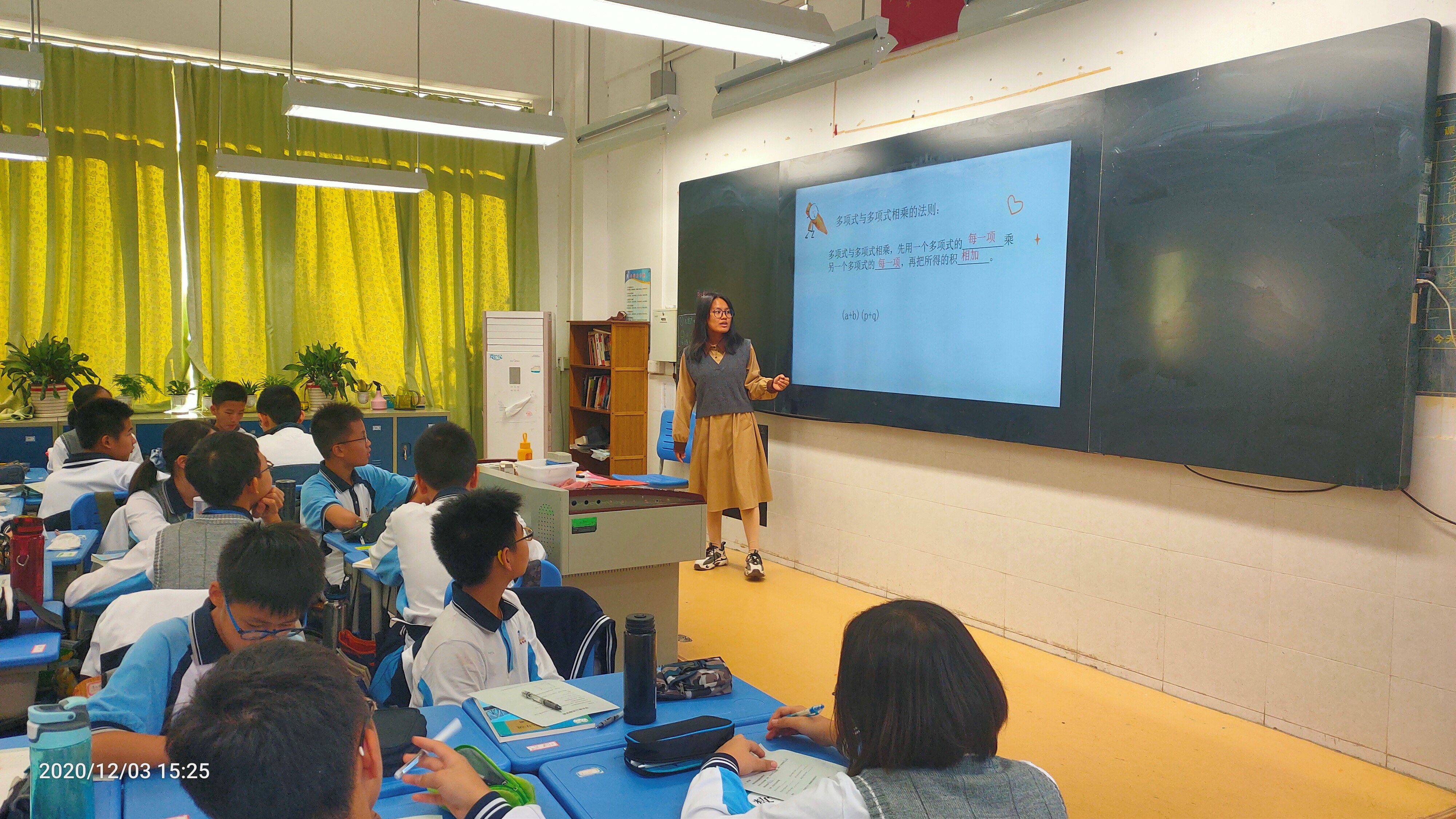 12月3号下午,实习巡查组来到天河外国语学校,听取了朱柏蓉在初一(5)班开展《平方差公式》的公开课,同时参与听课的还有天河外国语学校实习的11名实习生以及初一年级级长兼初一(5)班的学科老师罗海城老师。