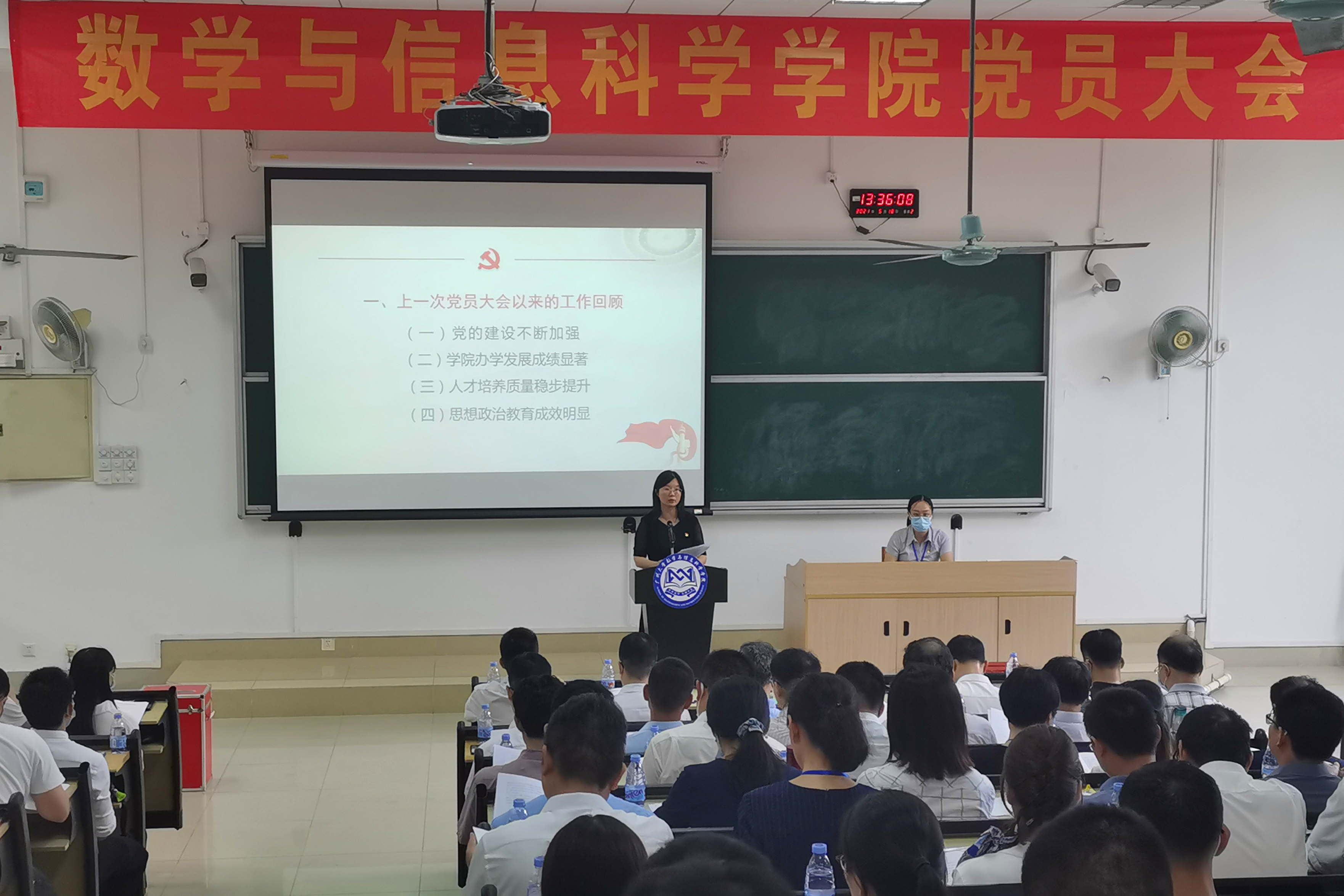 党员大会隆重召开,数学学院全体党员170多人出席大会。校党委组织部副部长陈彦远、数学学院分工会主席白定勇教授受邀参加大会。郑美玲同志代表学院党委作工作报告,大会由杨春荣同志主持。