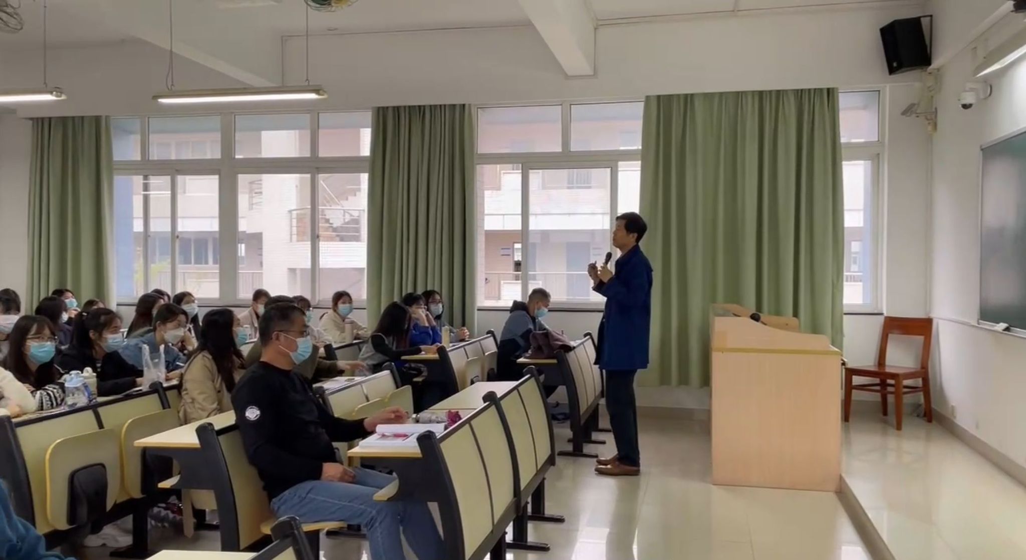 曹广福教授围绕“如何更好地说课和如何讲课”结合详细具体生动形象的案例展开讲座内容,提出了新课程理念下的课堂教学方法。其中,他提到了“说课不是宣讲教案、也不是浓缩课堂进程,核心是说理,说清楚为什么要这样教”,他特别强调,除了普适性的教学基本技能,还要注意学科的特性,了解数学与众不同的教育功能,对教学中的问题提出要有价值与意义方面的深入思考,避免无效问题的出现;通过对问题的分析充分展现数学的思想方法,在解决问题的过程中完成知识的建构。在座的同学们纷纷表示重新理解了说课的实质内涵和意义,也认识到原本的八股文讲稿式的说课基本只是读讲稿,并没有很认真的思考说课的内容,实际上说课应该结合学生的特点和课程内容,说明因材施教的内在逻辑。
