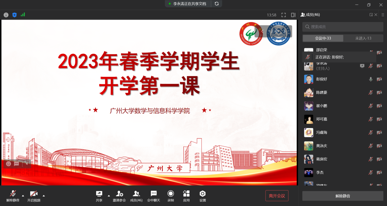 信计192班班主任彭俊好老师在线上带领同学们一起学习疫情防控的相关知识、安全教育、心理教育、劳动教育、思想教育等相关重点内容,同时向毕业班强调了完成毕业论文的各个重要时间节点以及注意事项,提醒同学们为顺利毕业做好准备。