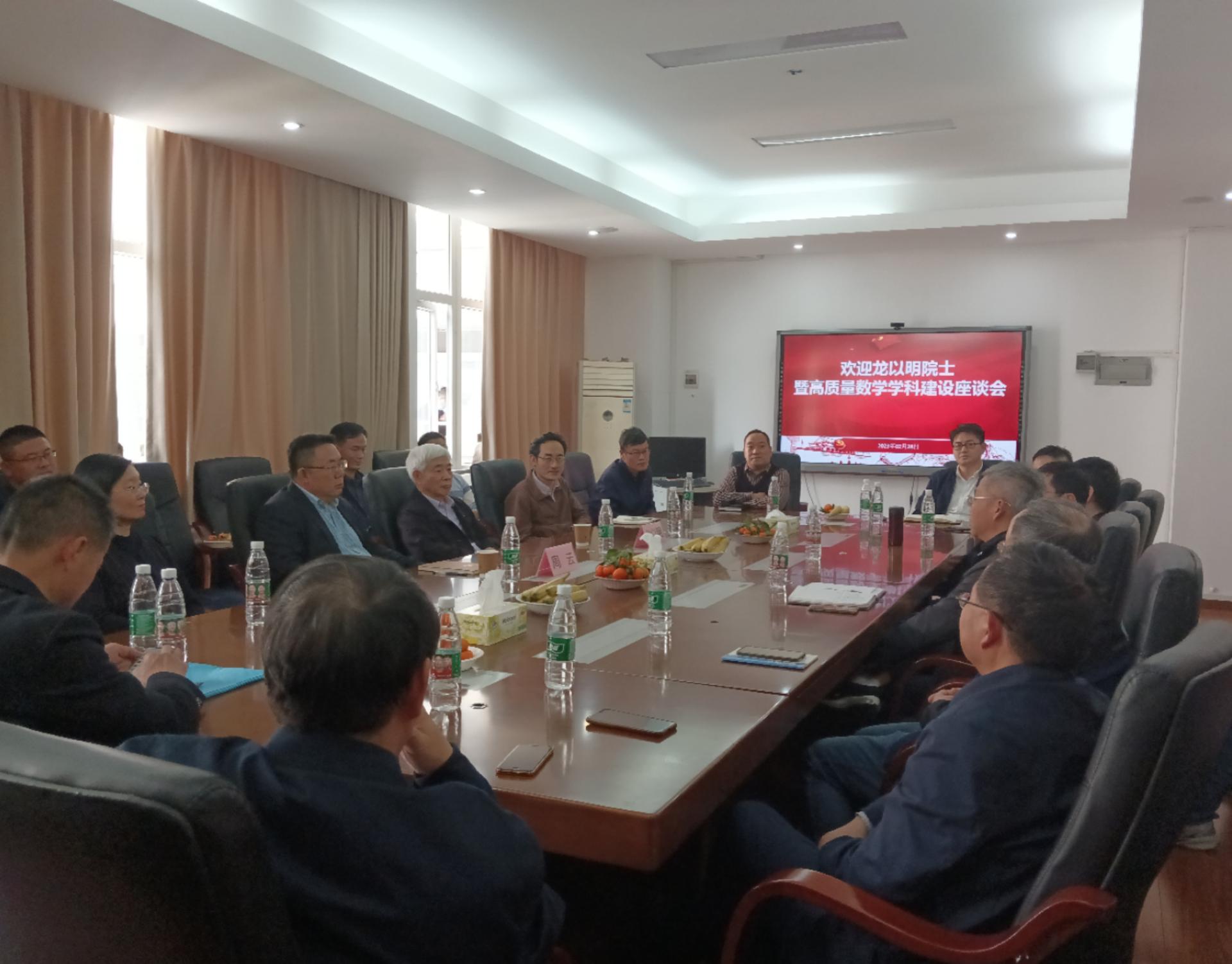 举行欢迎龙以明院士暨高质量数学学科建设座谈会。副校长周云、院党委书记郑美玲及学科带头人、青年教师代表参加了座谈会。会议由院长彭济根主持。