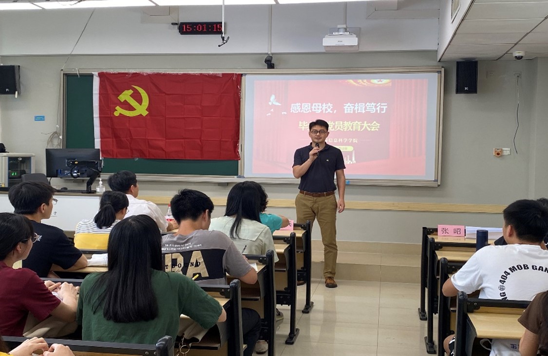 接着,党委书记周海兵老师结合最近的三个时事,对党员们深切寄语。当前正处在“百年未有之大变局”,面临的形势、工作的任务和标准都发生了较大变化,新时代党员们要坚定政治立场、严明政治纪律,勇敢接受这个时代的挑战,怀抱梦想又脚踏实地,敢想敢为又善做善成,为国家和社会的发展贡献光与热。